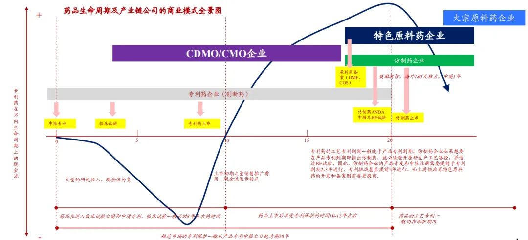 图:药品生命周期及产业链商业模式,来源:浙商证券