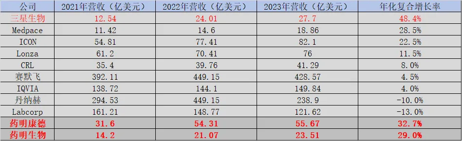 图:全球主流CXO营收数据,来源:锦缎研究院