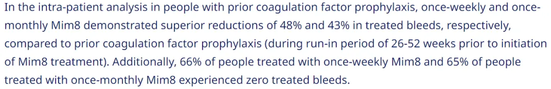 对于此前使用凝血因子预防治疗的患者,Mim8将出血事件减少48%和43%。