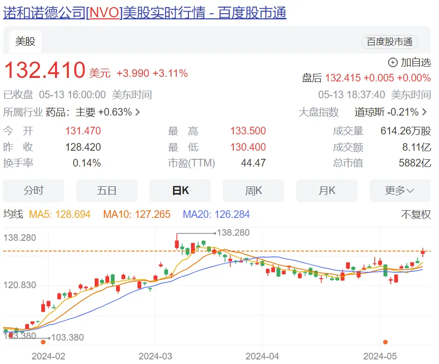 受此消息影响,诺和诺德股价当天涨3%,市值达到5880亿美元,逼近6000亿美元大关。