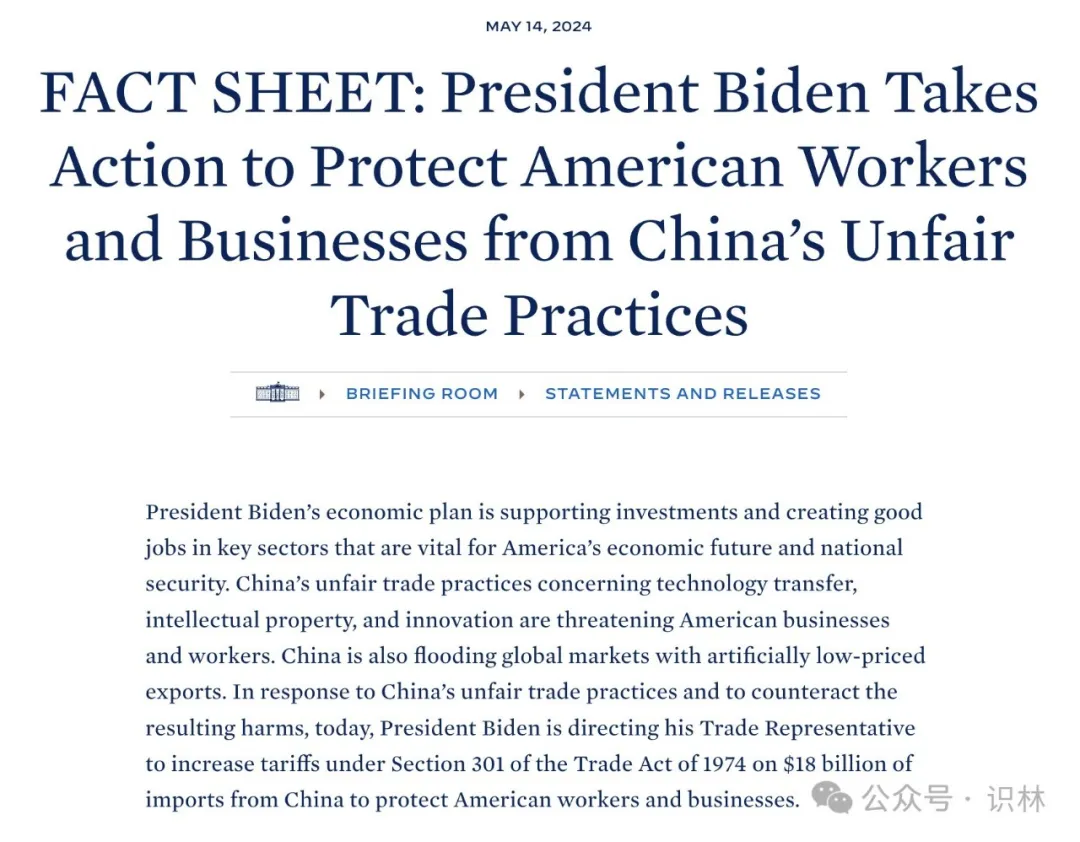 未来,我国出口到美国的一系列产品将被加收关税,包括注射器、针头和手术手套。除医疗产品外,美国还将对我国的钢铁和铝、半导体、电动汽车、电池、关键矿物、太阳能电池和船岸起重机等价值 180 亿美元的产品提高关税。美国白宫于 5 月 14 日公布了这一消息。