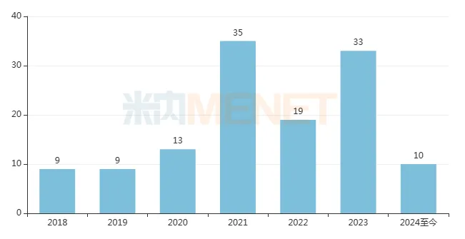 随着驱动创新药研发政策的密集出台,2018年至今已有128个国产1类新药获批上市。其中,2018年、2019年均获批9个(不含预防用生物制品,下同),2020年、2021年分别获批13个和35个;2022年稍有回落,获批了19个,2023年出现反弹,获批了33个;而2024年至今已有10个新品获批。