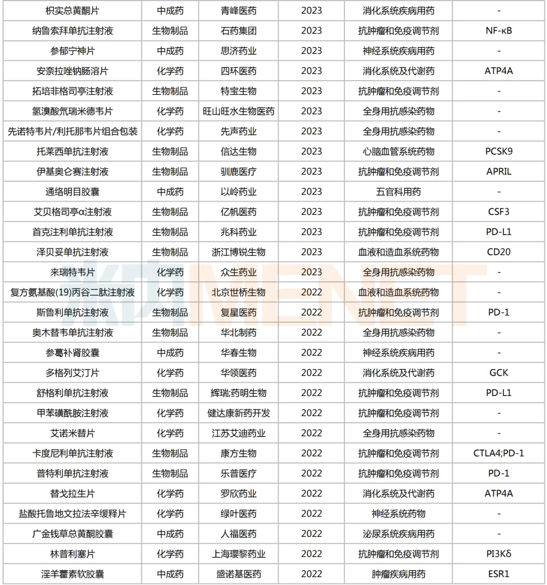 2022年至今获批的国产1类新药