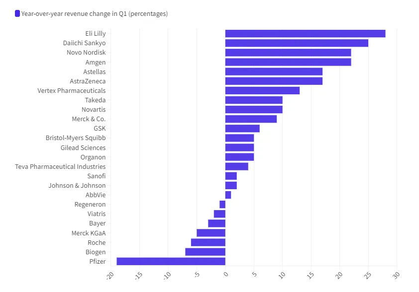 2024 Q1 制药巨头营收增长率 图片来源:Fierce Pharma