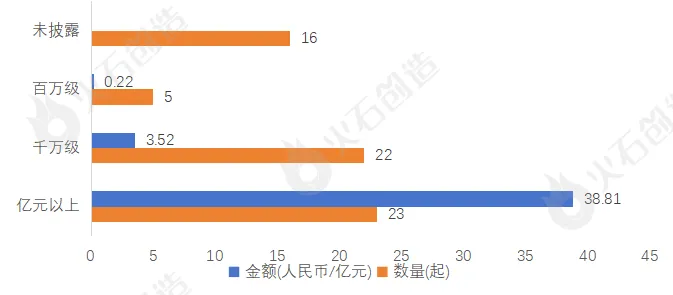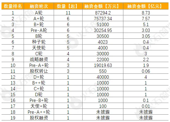 从融资额度来看,本月66次融资事件,其中单笔融资金额在亿元以上的融资事件为23起,合计融资金额约38.81亿元,占本月融资规模总额的91.21%。