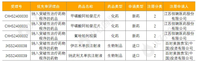 2024年4月,共有12个产品进入优先审批通道,共有14个产品进入特殊审评审批通道。