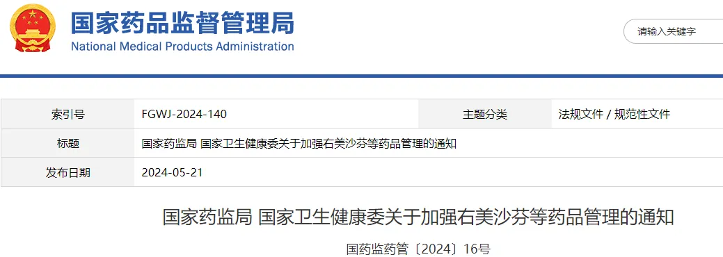 继4月26日,国家药监局、公安部、国家卫健委三部门联合印发通知,将右美沙芬等药品纳入“二精”目录后,日前,国家药监局与国家卫健委再发通知《关于加强右美沙芬等药品管理的通知》(国药监药管〔2024〕16号,下称16号文)。