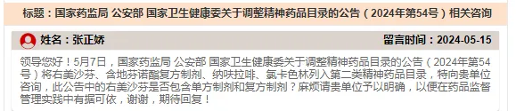 据《GSP办公室》报道,5月15日,有人向云南省药监局提出相关咨询,