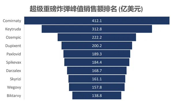 图1. 超级重磅炸弹峰值销售额前十名