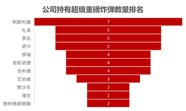 图4. 公司持有超级重磅炸弹数量排名