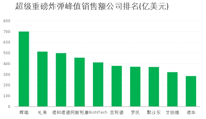 图5. 超级重磅炸弹峰值销售额公司排名