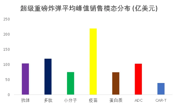 图8. 超级重磅炸弹平均峰值销售模态分布图