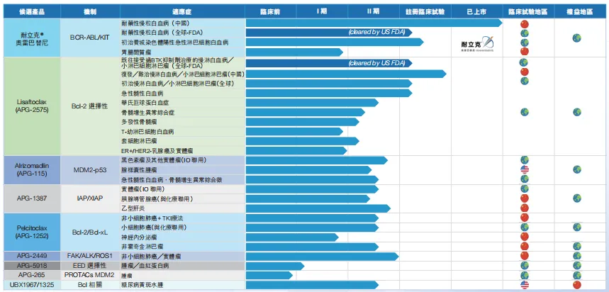 0APG-2575是首个在中国进入临床阶段的Bcl-2抑制剂,具全球Best-in-class潜力,已获5项美国FDA授予的孤儿药资格认证,分别为华氏巨球蛋白血症(WM)、慢性淋巴细胞白血病(CLL)、多发性骨髓瘤(MM)、急性髓系白血病(AML)及滤泡性淋巴瘤(FL)。