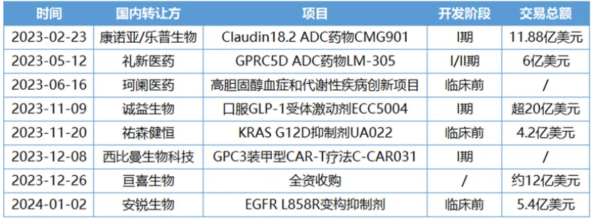 2023年以来阿斯利康在中国达成交易并购情况