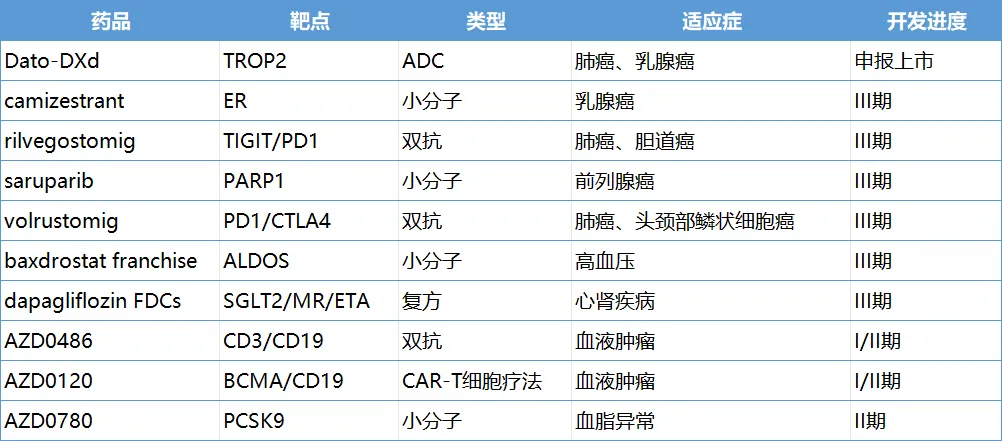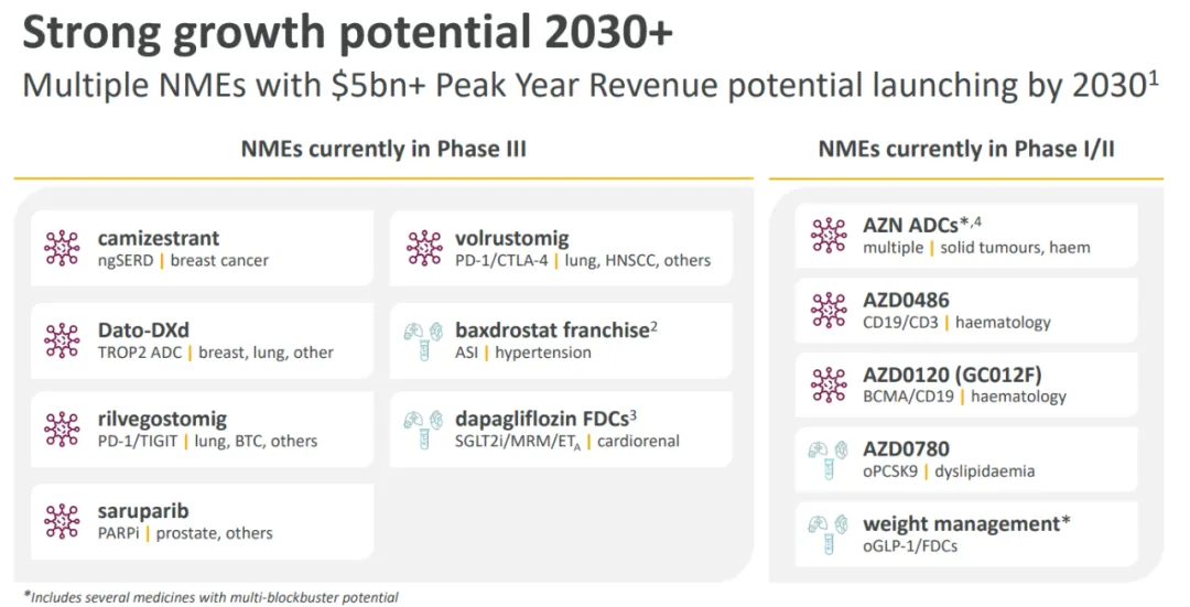 阿斯利康潜在峰值收入50亿美元+的候选产品