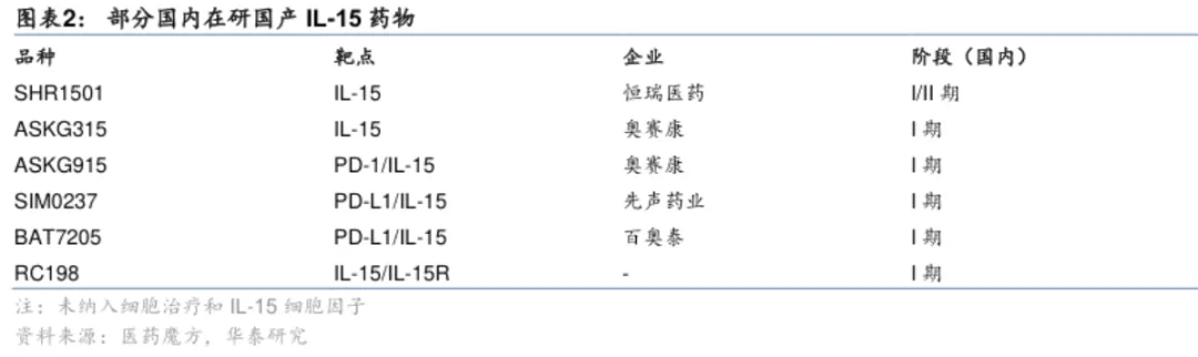 但随着IL-15靶点的重磅炸弹潜力被ImmunityBio开发出来,国内临床分子如若读出优良数据,BD价值和兑现性无疑将被挖掘出来。