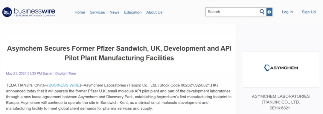 日前,凯莱英宣布,与Discovery Park签订新协议,自2024年6月起,将全面管理和运营前辉瑞英国小分子原料药试验工厂和部分开发实验室,建立其在欧洲的首个生产基地。