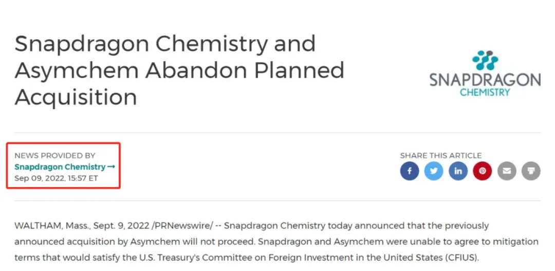 投资者观点认为,凯莱英看中Snapdragon,其附带的美国市场资源或许是考量的重要因素,借助Snapdragon这个公司平台,获得更多美国市场业务。常规而言,双方在达成交易之前已对CFIUS审核要求进行过评估,然而从2022年2月到9月,情势急转直下,最终导致本次收购无法实施。