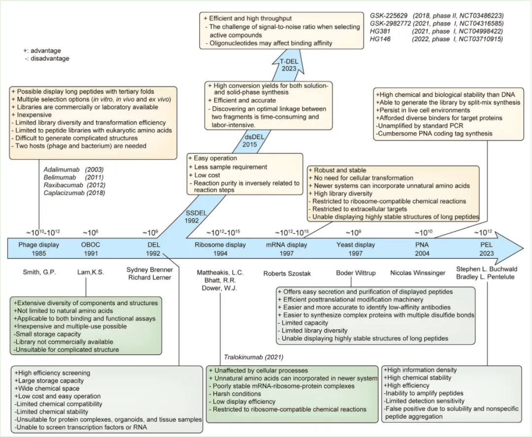 图1 DEL技术在药物发现开发时间轴的位置图片来源:Acta Pharmaceutica SinicaB.doi.org/10.1016/j.apsb.2024.04.006