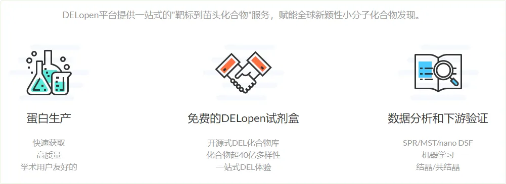 全球学术研究机构从事新药研发的科学家可以通过DELopen平台与工业界合作,利用最新的基因编码化合物库技术高效地完成早期药物发现。