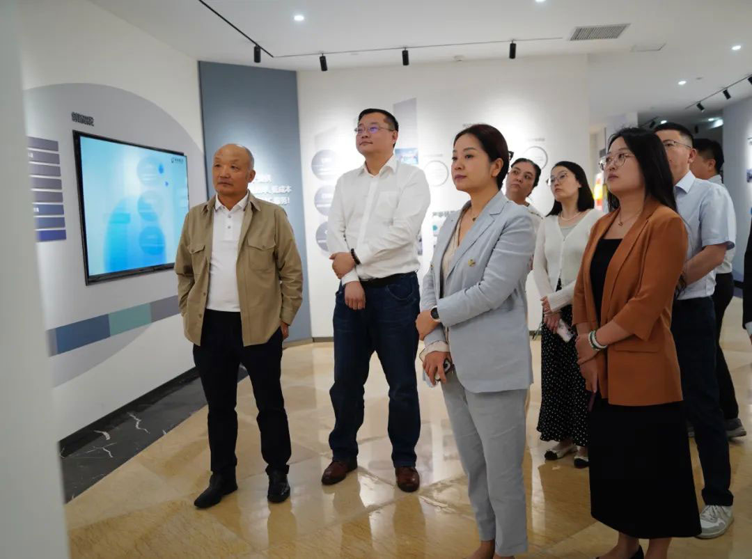 宋会长一行首先参观了华东医药展厅,并听取了华东医药发展历史和经营情况的介绍。自创新转型以来,华东医药逐步形成了医药工业、医药商业、医美产业和工业微生物的发展“四重奏”,不断完善“自研+引进”模式的创新研发体系搭建,重点布局肿瘤、内分泌、自身免疫三大领域,形成创新药开发完整周期产业链,医药产品管线已达百项,其中创新产品管线已达60余项,并构筑了以中美华东为核心的创新研发生态圈。
