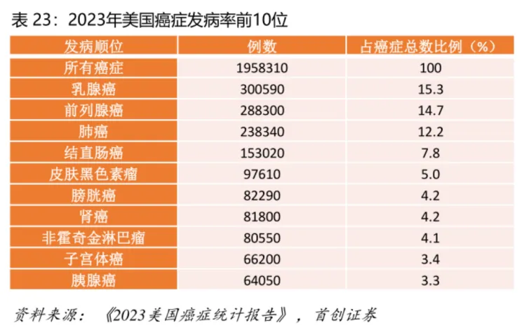 分别以美国男性和女性发病率第一的癌症前列腺癌和乳腺癌为例,乳腺癌中占比近70%的HR+/HER2-分型一线治疗药物CDK4/6抑制剂“独霸江湖”,三款同类药物创造了百亿美元市场,市场规模稳步增长;前列腺癌更是如此,抗雄激素治疗的AR拮抗剂、CYP17抑制剂牢牢把握一线治疗市场,孕育出恩杂鲁胺、阿比特龙等重磅炸弹,市场规模同样超百亿美元。