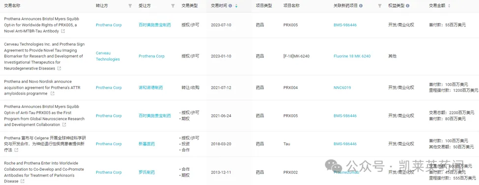 2021年6月,BMS与Prothena达成战略合作协议,向Prothena支付8000万美元,获得PRX005在美国的独家许可。