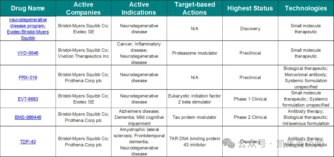 BMS神经退行性疾病管线(来源:cortellis)