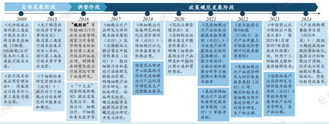 我国CGT政策历经自由发展、调整、规范三个发展阶段。近年来对于细胞与基因治疗的规划来看,主要以加速新药研发、开展生物技术创新等支持性规划为主。监管体系和评价方法也在不断完善,以适应技术进步和产业发展的需求。