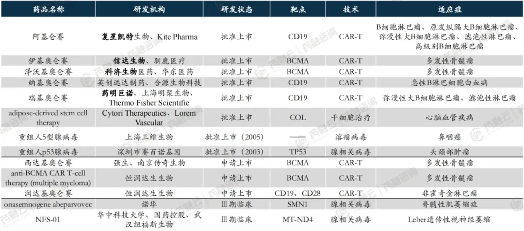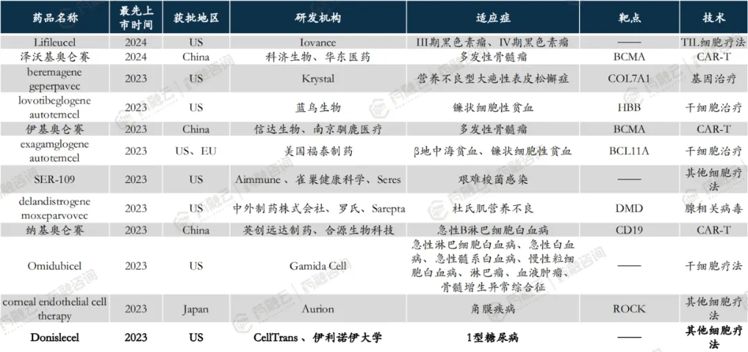 全球已有超70款CGT品种上市,2020年以来获批上市品种盘点。