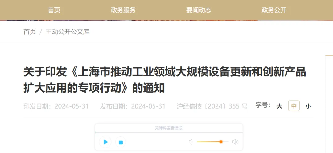 5月31日,上海市经济和信息化委员会等多部门印发《上海市推动工业领域大规模设备更新和创新产品扩大应用的专项行动》(以下简称《专项行动》)。