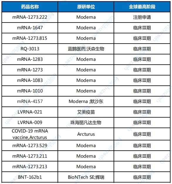 表1 NDA及临床3期阶段mRNA疫苗和药物