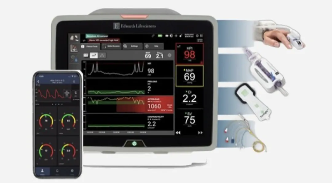 HemoSphere血流动力学监测平台,是全球最早拿到人工智能许可证的产品之一;其搭载了一套对病患未来发生低血压事件的可能性做出预测的软件。该技术已经在欧洲和美国多地帮助医生进行术中低血压临床诊断,2022年已在中国获批上市。