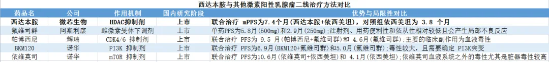 西达本胺第二个适应症是联用依西美坦治疗晚期激素受体阳性的乳腺癌,在我国,每年新发乳腺癌病例约42万例,发病率和死亡率分别居女性恶性肿瘤首位和第四位。这其中以激素受体阳性(HR+)乳腺癌患者最为常见,约占60%-70%。西达本胺联合依西美坦与单用依西美坦相比,可显著延长患者的无进展生存期(PFS),其中在有内脏转移的患者中差异更明显。另外,西达本胺联合依西美坦在客观缓解率、临床获益率方面均优于安慰剂联合依西美坦。同时,此项适应症的临床研究在全球首次确证HDAC抑制剂联合其它靶向药物可以有效改善肿瘤耐药并进一步增敏对靶向药物的疗效。依赖有效的临床数据及明朗的临床需求,西达本胺可在该适应症上为微芯生物持续增加收入。