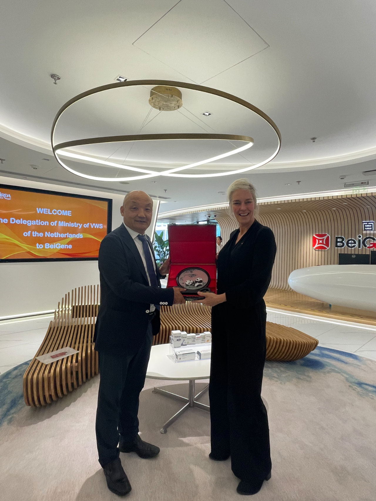 中国药促会会员单位百济神州、绿叶制药、复星医药、先声再明、三生制药代表参与了此次会见,并分别就公司在荷兰及欧洲开展的业务、市场布局,进入荷兰及欧洲市场遇到的困难及挑战进行了介绍及沟通。中国药促会副会长吴晓滨博士向参会人员介绍了近年来中国创新医药产业的迅猛发展。新药研发与国计民生息息相关,十多年前中国只有仿制药,几乎所有创新药都来自于进口。中国自2015年以来启动了药监改革,在过去的几年时间里,国家从政策导向、技术支持、人才资源和资金投入等多个维度,为中国医药产业创新发展构建起了可持续发展的良好生态环境。经过多年的厚积薄发,中国创新药企的研发水平和能力显著提升,目前已进入到世界创新药第二梯队的排头。胡梓吟对中国医药企业的创新转型、仿制药生产的未来以及国际化布局表现出浓厚的兴趣,并认真聆听企业在开展临床试验、药监审批、产品准入等方面遇到的问题与诉求,表示荷卫生、福利和体育部愿积极听取中国企业意见建议,并将协调荷包括经济部在内的相关部门给予支持,愿与中国药促会及中国医药企业共同推动产业务实合作。