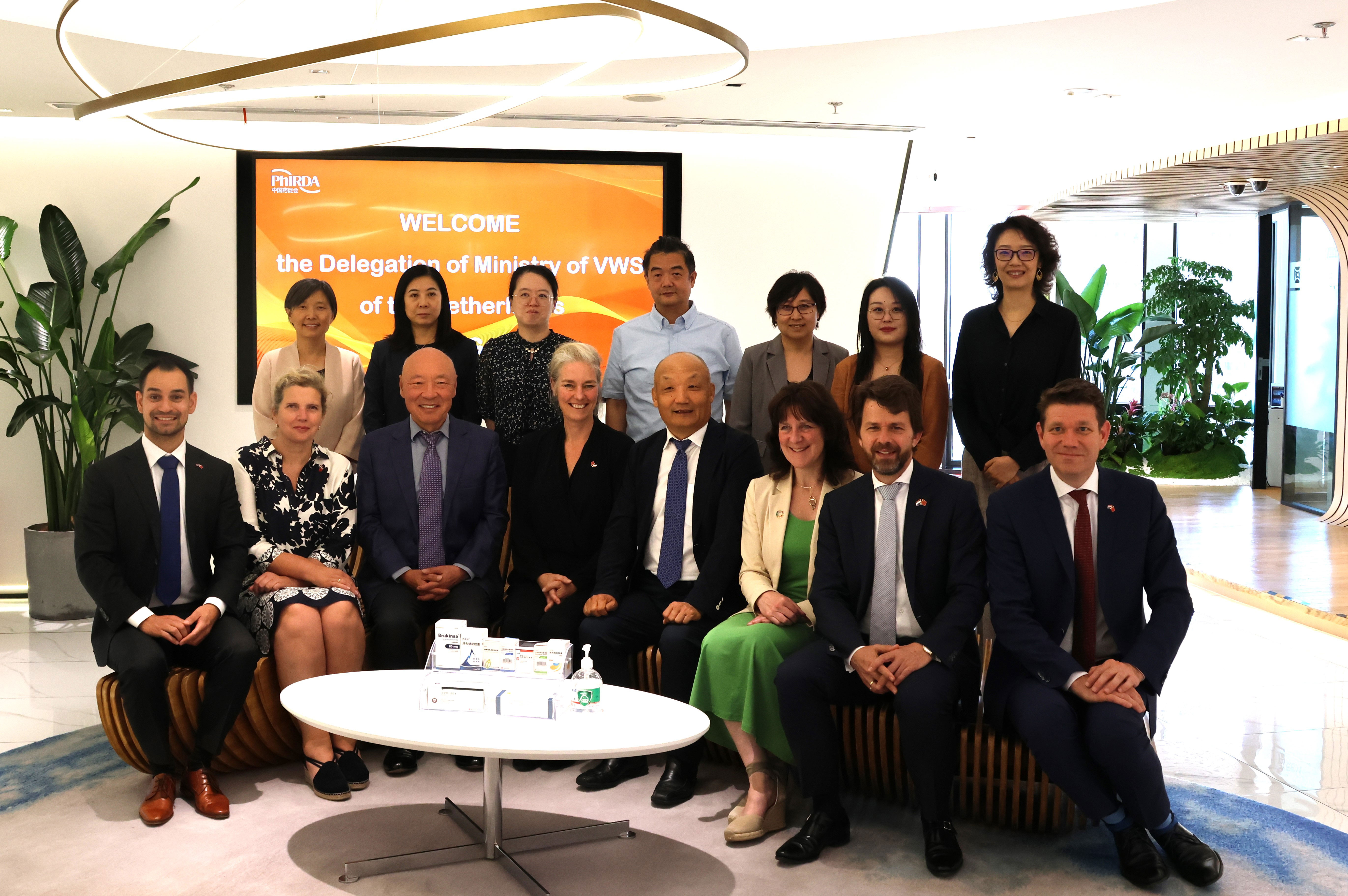 宋会长首先对胡梓吟一行来访表示热烈欢迎,并高度赞赏荷兰卫生、福利和体育部在推动中荷医药、医疗等卫生领域合作作出的重要贡献。宋会长表示,近年来,中荷两国政府部门、医疗机构、专家学者交流密切,在医疗健康、医学科研等方面展开了多层次、多领域的合作。荷兰具有充满活力的生命科学产业集群、颇具竞争力的生物制药行业、创新的生物技术公司,两国应加强医药创新与产业的交流与合作,借助欧洲药品管理局(EMA)迁址阿姆斯特丹的区位优势,充分发挥荷兰在药物研发和医疗卫生领域的突出优势,为两国在医药领域的全方位合作共赢增添强劲动力,助力全球医药产业创新发展。同时,为应对荷兰及欧洲面临的药品短缺问题,宋会长呼吁中荷两国的药监机构应加快建立统一的药品监管标准,建立两国药品短缺清单,缩短审评审批周期,从而吸引更多的中国医药企业赴荷投资建厂,促进两国医药产品的互流互通。