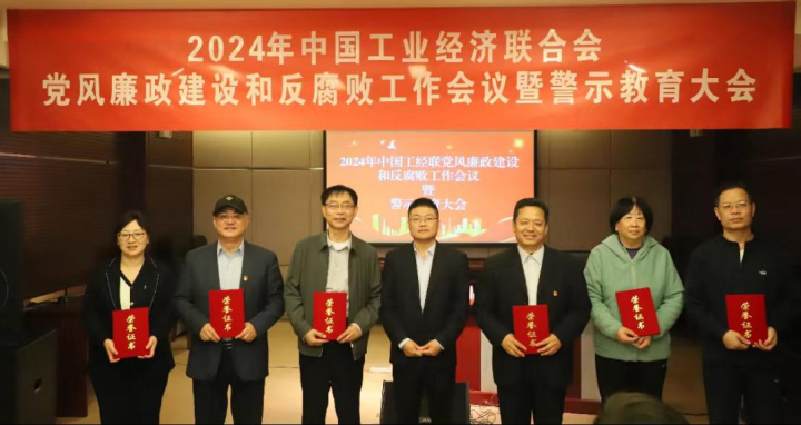 会上,与会代表集体收看了反腐败警示教育片《正风反腐就在身边(第一集)》;中国工经联党委、纪委与中国工经联各部室、中心、平台、公司、直管单位、代管协会的负责同志现场签署了《2024年中国工经联系统纪检监督工作责任书》,进一步完善纪检监督机制,压紧压实纪检监督责任;向2023年中国工经联系统先进纪检监督员和联络员颁发证书。
