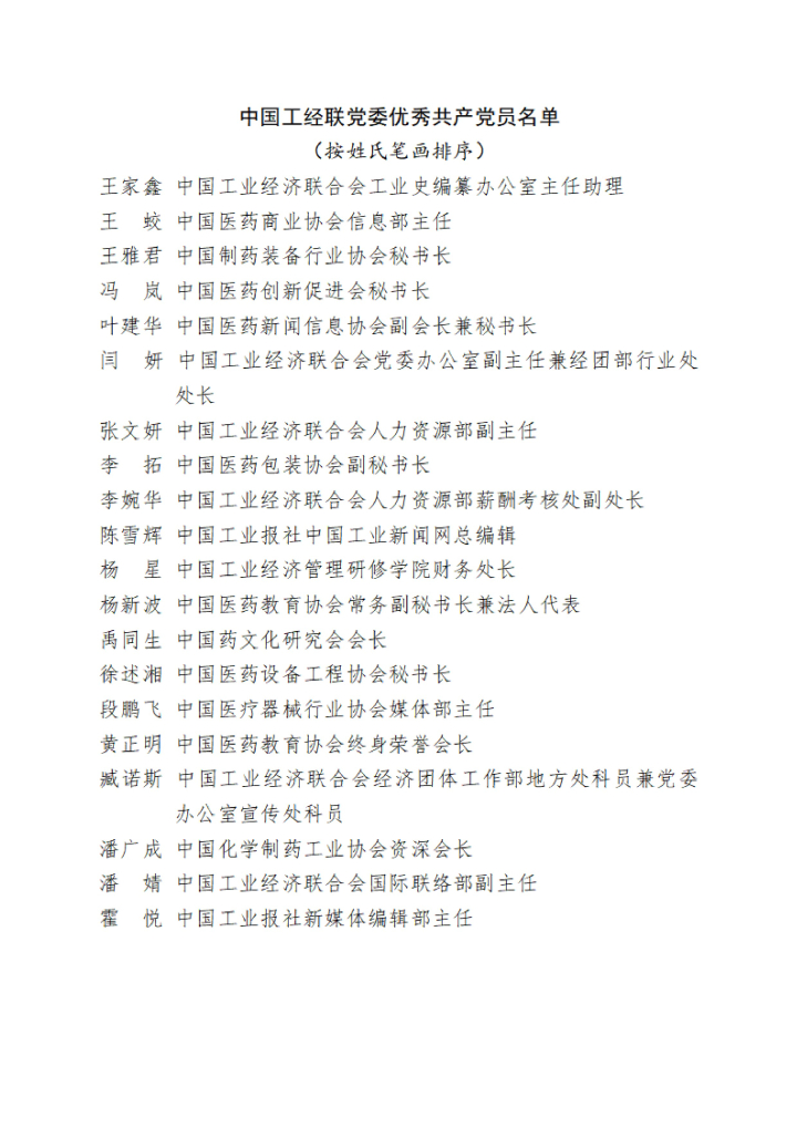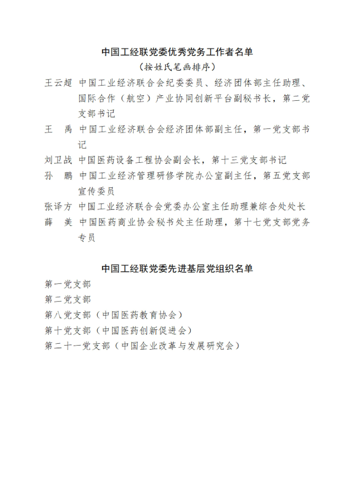 党委委员、执行副会长郜志宇宣读了《中国工业经济联合会党委关于表彰“两优一先”的决定》。在习近平新时代中国特色社会主义思想指引下,中国工业经济联合会党委系统深入学习贯彻党的二十大精神,充分发挥基层党组织战斗堡垒作用和党员先锋模范作用,涌现出一批优秀个人和先进集体。他们在协会党的建设和其他各项工作中,坚持不懈用习近平新时代中国特色社会主义思想凝心铸魂,特别是在完成党建重点工作任务、推进党支部标准化建设等工作中,政治立场坚定、业绩贡献突出、勤奋努力工作、勇于责任担当、取得优异成绩。中国工经联党委研究决定,授予王家鑫等20名同志“优秀共产党员”称号,授予王云超等6名同志“优秀党务工作者”称号,授予第一党支部等5个基层党组织“先进基层党组织”称号。我会党支部被授予“先进基层党组织”称号,党支部书记、秘书长冯岚同志被授予“优秀共产党员”称号。