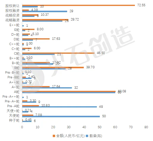 图2:各轮次融资数量及金额 来源:火石创造产业数据中心