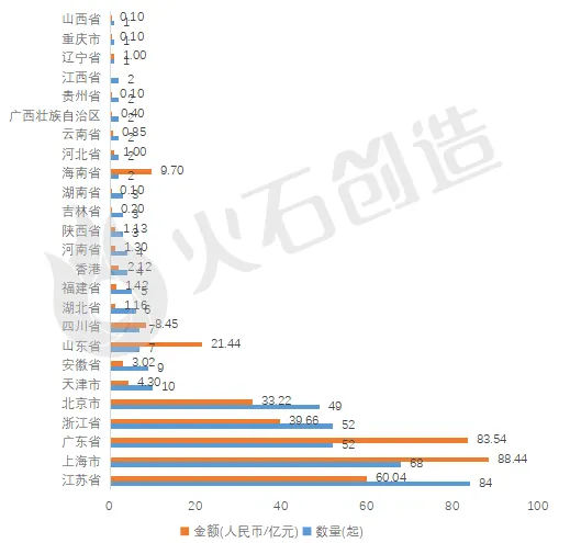 图3:各地区融资数量及金额 来源:火石创造产业数据中心