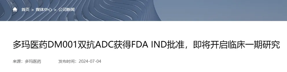 7月4日,多玛医药宣布,其首个双抗ADC产品DM001正式获得美国FDA IND批准。2024年6月26日,也正式获得澳大利亚CTN批准,即将开启临床一期研究。