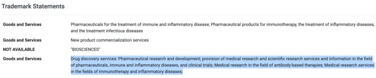根据Belenos的商标注册信息来看,大概率是自免领域的双抗产品。这也是海外颇为热门的交易领域。
