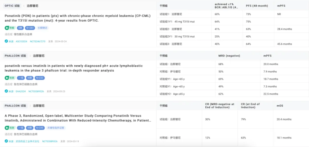 泊那替尼临床试验结果