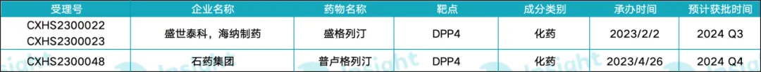 2023 年 7 月,石药集团 1 类新药普卢格列汀上市申请获受理(受理号:CXHS2300048)。