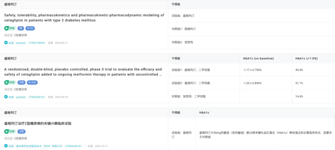 盛格列汀临床试验结果