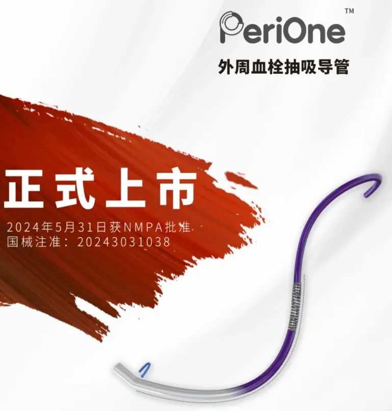 一个多月前,唯强医疗的PeriOne™外周血栓抽吸导管刚刚获得NMPA批准。PeriOne™外周血栓抽吸导管适用于去除外周血管中的血栓,包括上下肢动静脉、内脏动静脉、上下腔静脉、肺动脉等。抽吸导管头端设计为有预弯和无预弯两种类型,预弯角度为30度。抽吸导管配合负压注射器或机械负压泵可高效抽吸外周血管内的血栓。
