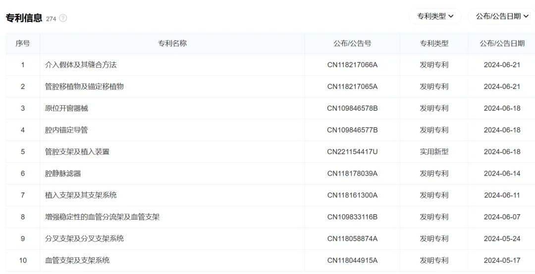 经查询,唯强医疗有专利信息274项,以下是前10项的抓图: