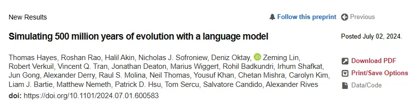EvolutionaryScale成立于2023年7月,目前公司已完成超1.42亿美元的种子轮融资,领投方包括Nat Friedman、Daniel Gross、 Lux Capital,参投方包括Amazon、NVentures(英伟达的风险投资部门)等。EvolutionaryScale的创始团队来自Meta的FAIR (Fundamental AI Research)部门,是将AI应用于生物学的先驱。该创始团队于2019年构建了ESM1——被广泛认为是第一个用于蛋白质的大型语言模型(LLM)。之后,他们曾使用ESM-2模型创建了一个包含6亿个预测蛋白质结构的免费数据库。2023年4月,相关科学家离开Meta,创办EvolutionaryScale,开发下一代生成模式——ESM3。