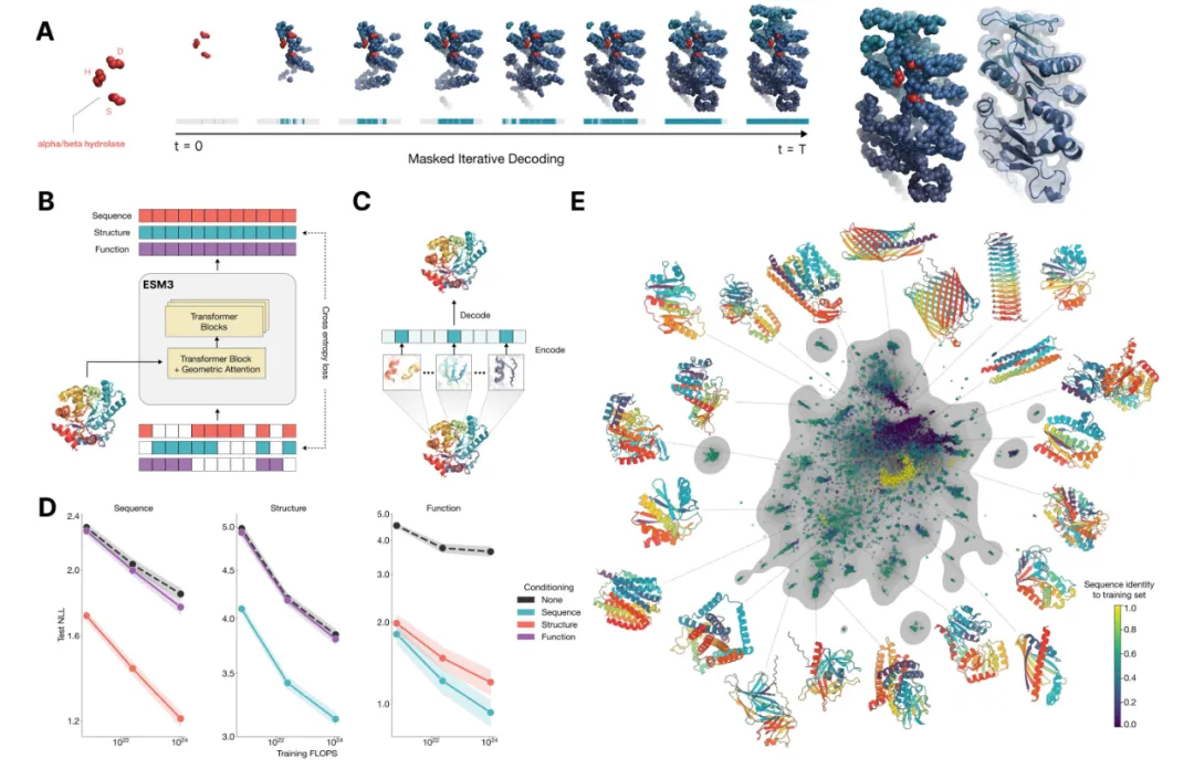ESM3可以联合推理蛋白质的序列、结构和功能(来源:EvolutionaryScale)