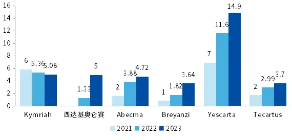 六款CAR-T产品销售概况